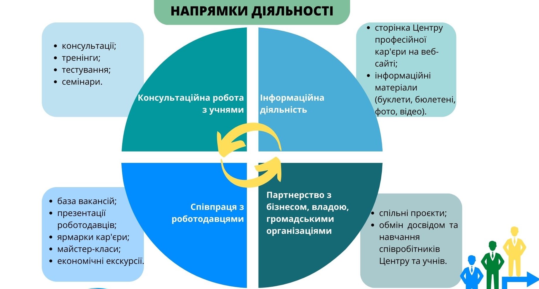 - Ведення інформаційної й рекламної діяльності, що відповідає напрямам роботи Центру кар’єри.