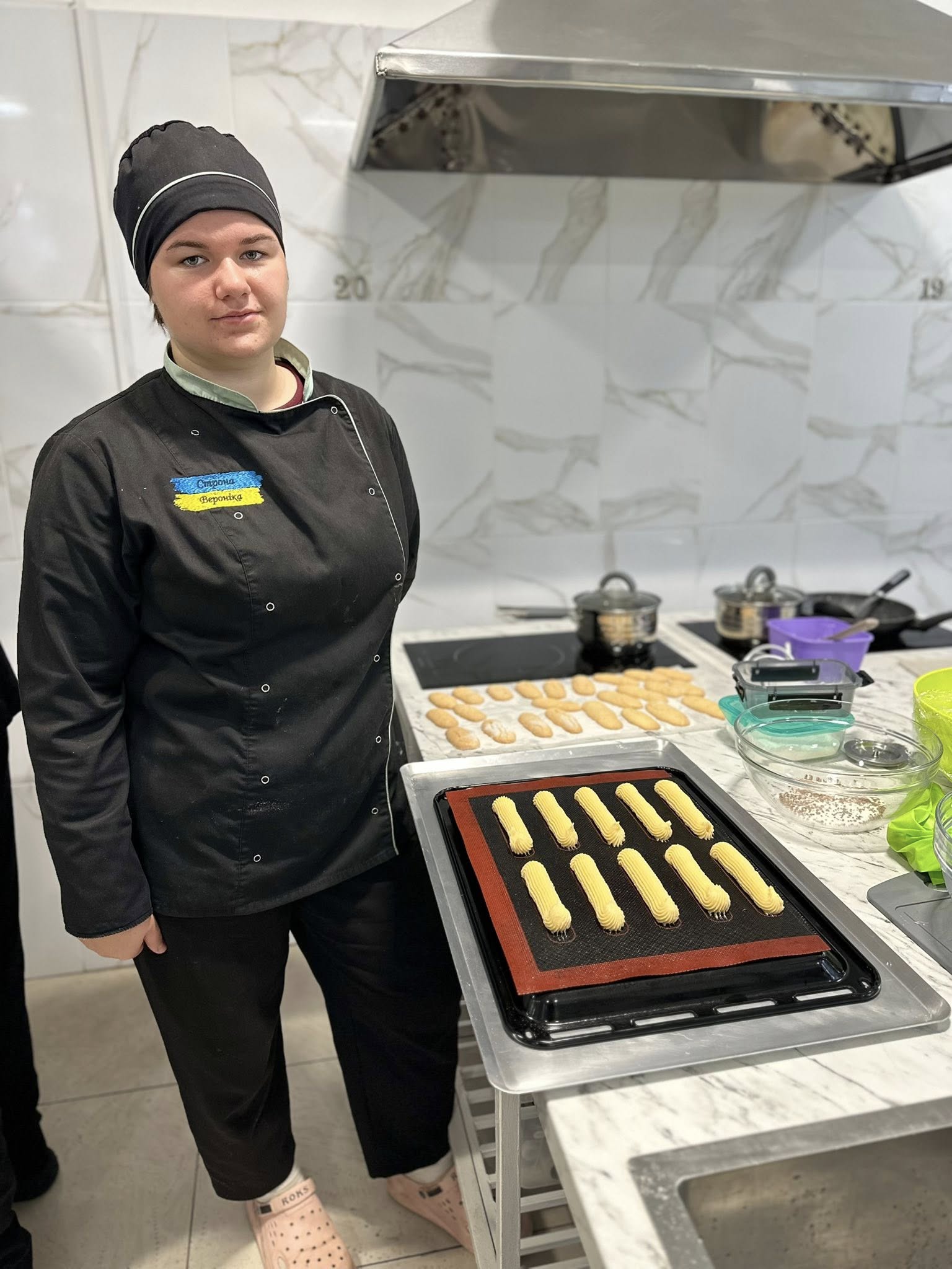 На столах атестаційної комісії сьогодні панував солодкий аромат творчості та професіоналізму — студенти представили свої найкращі вироби: бріош, лимонний тарт, торт «Три шоколади», тірамісу, «Червоний оксамит», еклери, сінабони, сочники, французький багет, грузинський хліб.